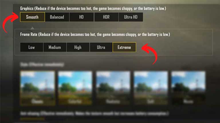 Even on expensive devices you only can set graphics to HDR and the frame rate is set to High. Anyways you can unlock the extreme frame rate mode on PUBG Mobile and enjoy 60 or 90 fps for better gameplay.